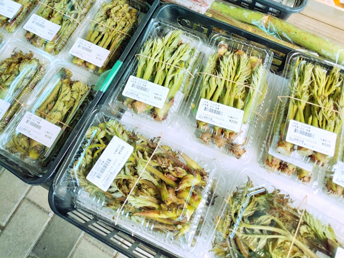 例年の定番でもあるのは、地元の野菜にわらびやタラの芽、ふきのとう、たけのこといった山菜。