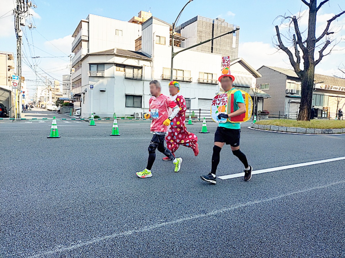 仮装している人に、ジャグリングをしながら走っている人。応援している側が楽しませてもらっちゃいました。