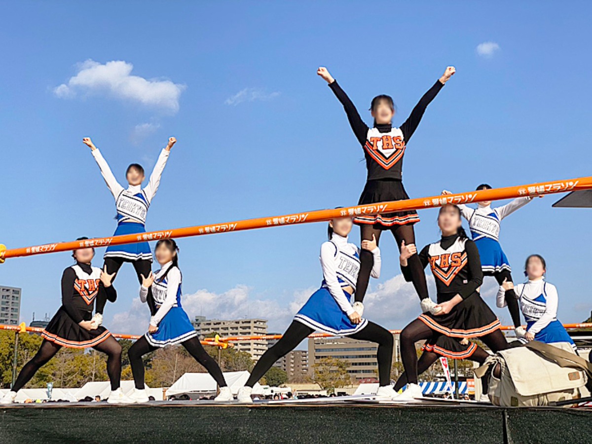 チアガールがエールを送ります。高いステージでのアクロバティックな動きに驚きました。