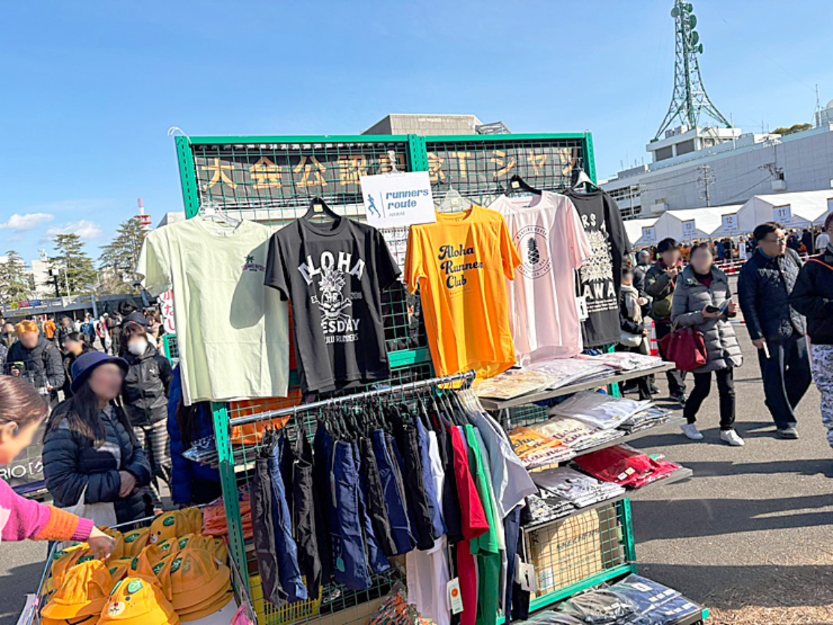 限定Tシャツや愛媛マラソンならではのグッズがずらり。