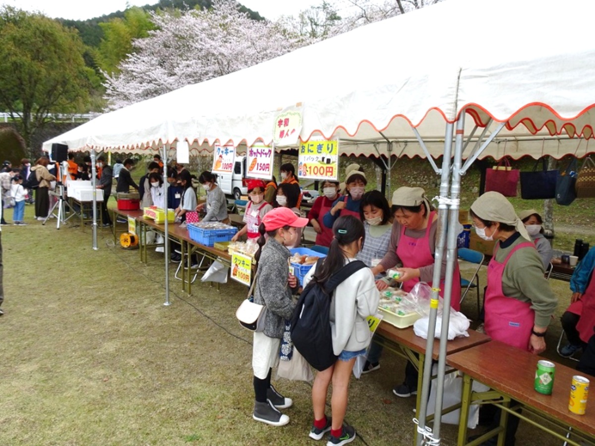 2026年3月29日(日)に開催される、宇和町の春の風物詩「桜まつり」では、地域団体によって、ホットドッグなどの軽食類や、お茶・ジュースなどの飲み物の販売が行われ、多くの人たちで賑わいます。