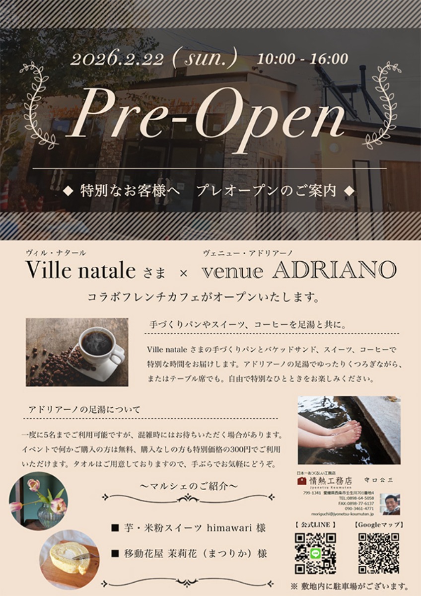 西条|情熱工務店 “venue ADRIANO” プレオープン|2月22日(日)