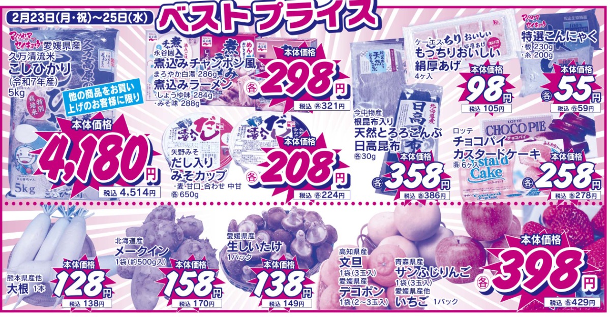 2月23日(月・祝)~2月25日(水)ベストプライス