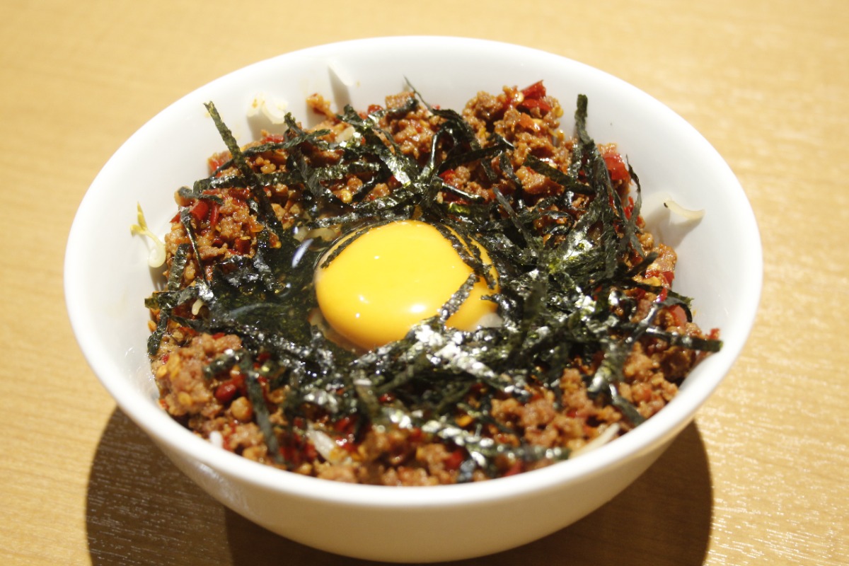 鶏ガラベースのスープに、旨辛のひき肉とニラ、唐辛子をたっぷり合わせたパンチのある味わい。