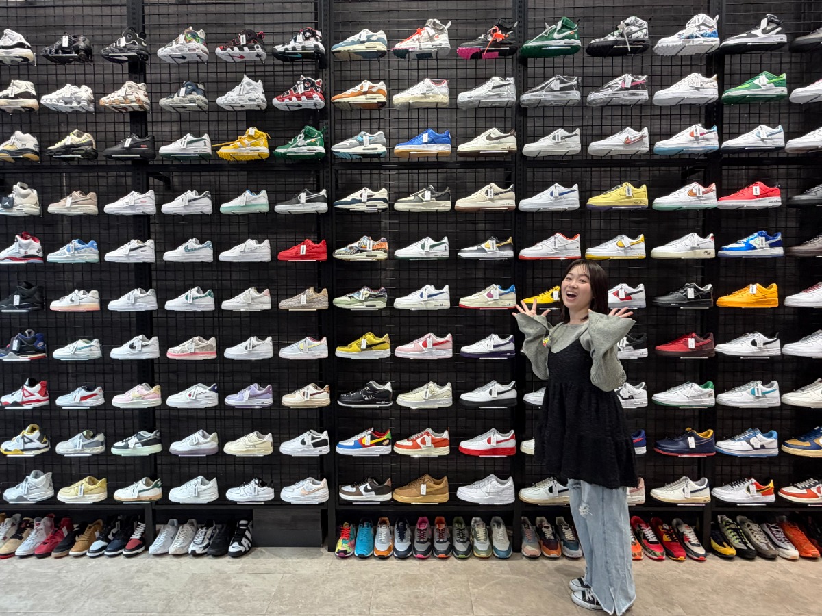 壁一面にスニーカーが並ぶスニーカーショップを発見。