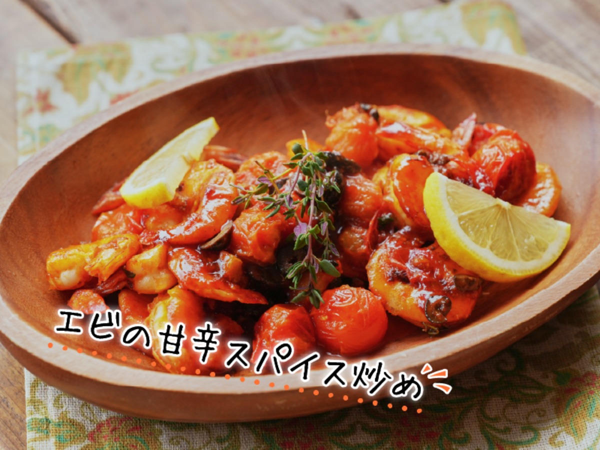 エスニックな味わいがクセになる「エビの甘辛スパイス炒め」