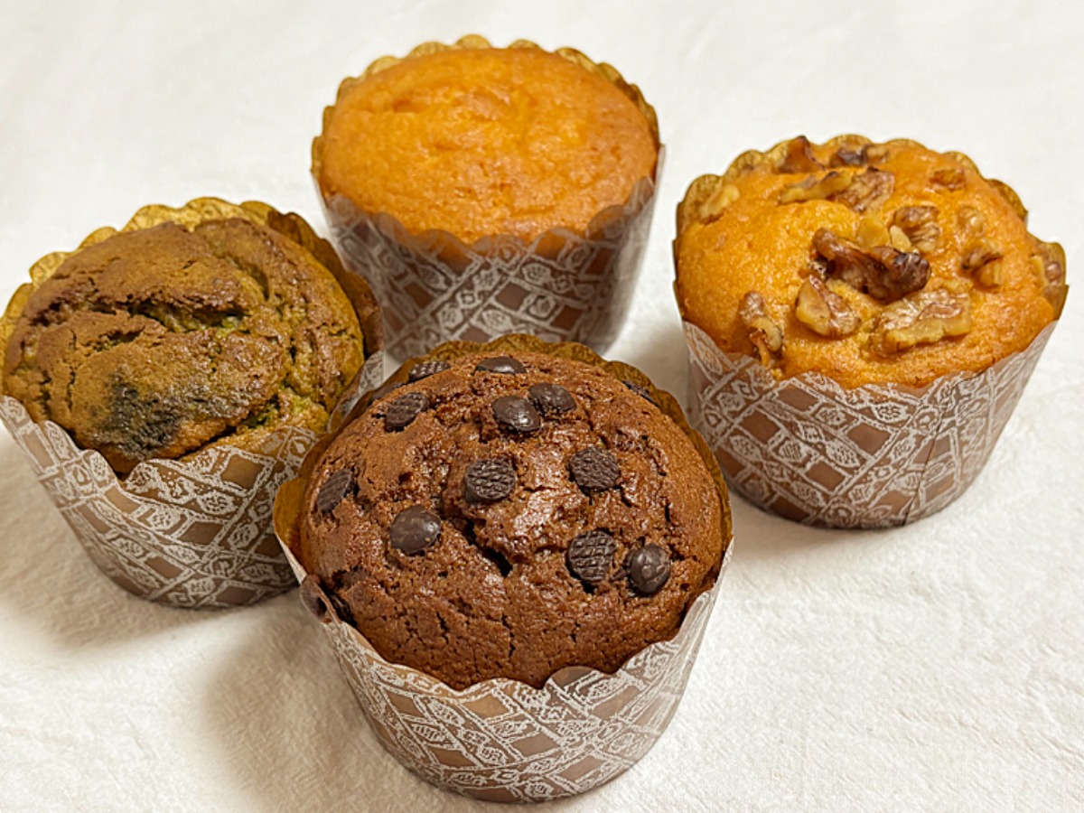 見た目はどれもシンプルなマフィンですが、最初に食べた時に驚きました!もっちもちの生地がとても美味しく、他にはあまりないマフィンです。