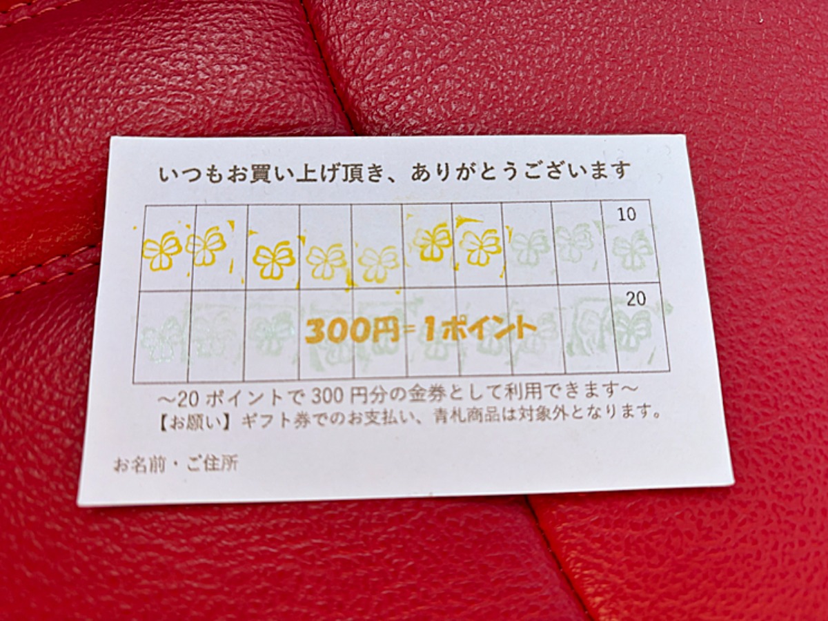 最近、このようなポイントカードがあるお店も減った気がするので、貯まると嬉しくなりますね。