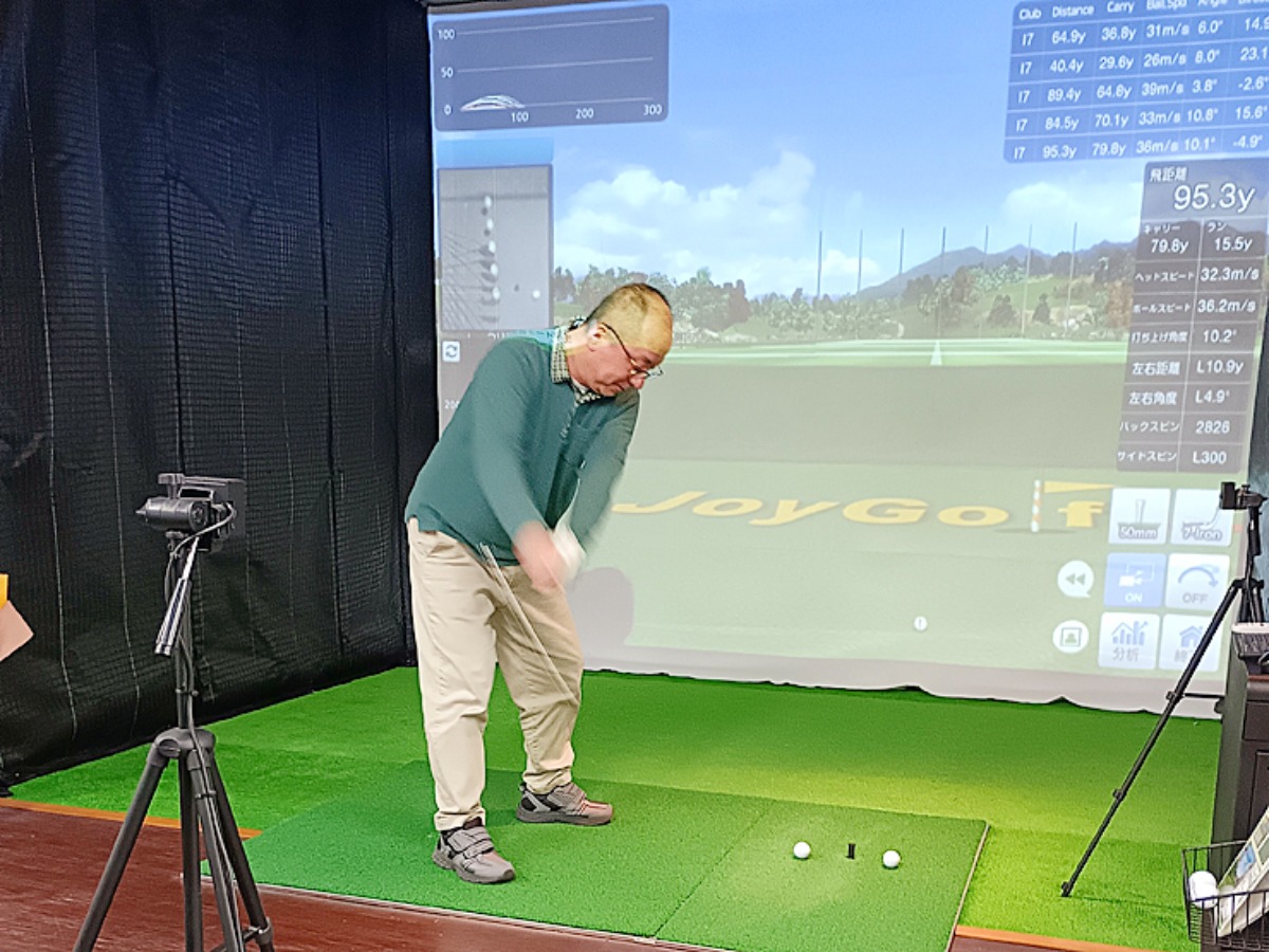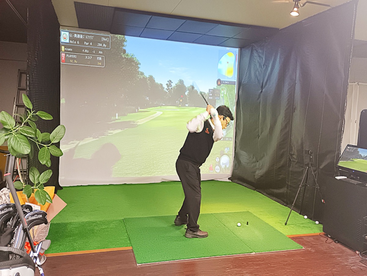 シミュレーションでは実際のコースを想定したラウンド体験や、飛距離・スイング軌道・スピン量のチェックが可能。