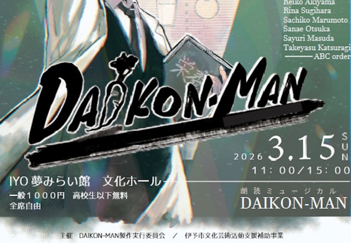 春の足音が近づく3月、伊予市に新たな感動を運ぶ朗読ミュージカル「DAIKON-MAN」がIYO夢みらい館 文化ホールで開催されます。