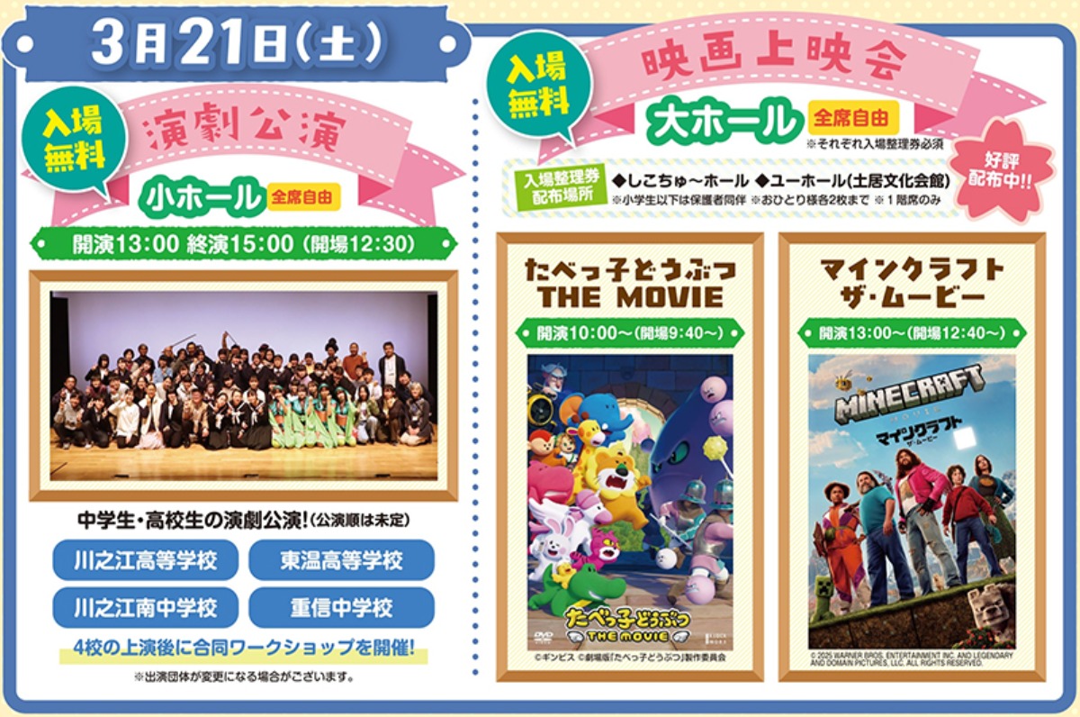 3月21日(土)には「たべっ子どうぶつ THE MOVIE」と「マインクラフト ザ・ムービー」を上映!