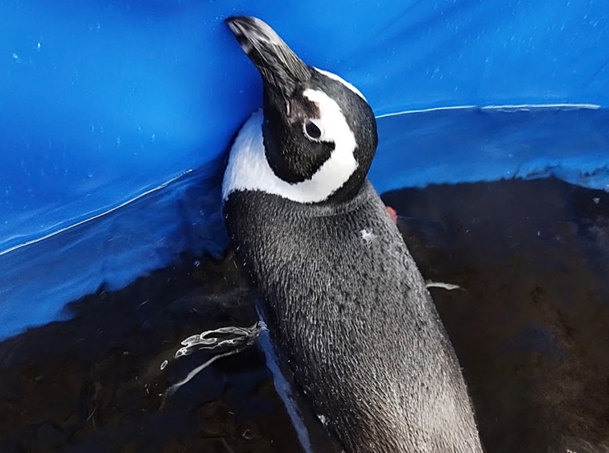 追いかけた先の海洋生物のコーナーでは、サメやカワハギのほか、ペンギンの姿も見ることができました。