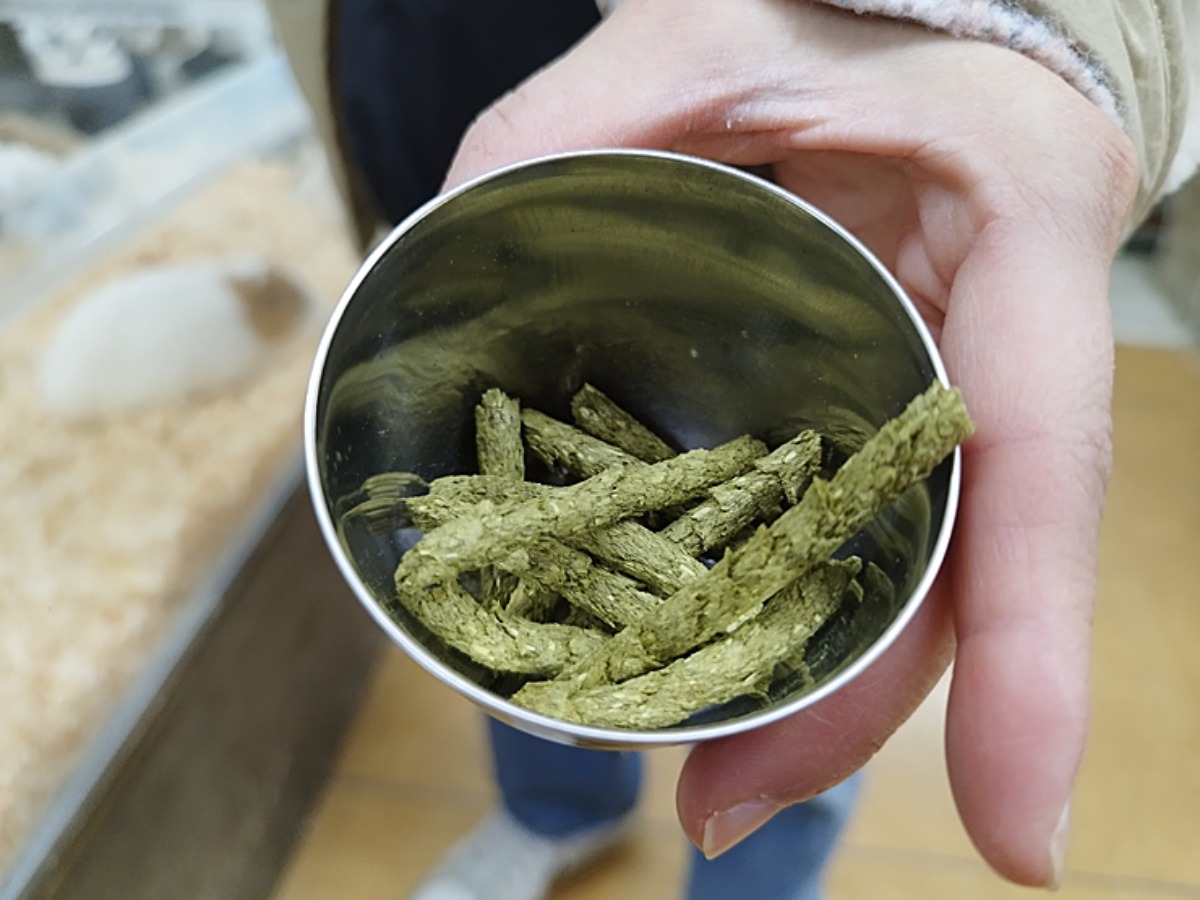 早速、100円で購入できるウサギ・モルモット用のエサを息子にプレゼント。