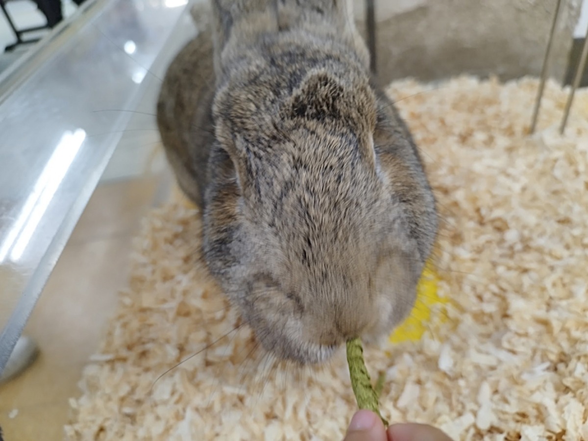 最初は恐る恐るエサを差し出していましたが、ウサギがぱくっと食べてくれると安心したのか、徐々に慣れて上手にエサをあげられるようになりました。