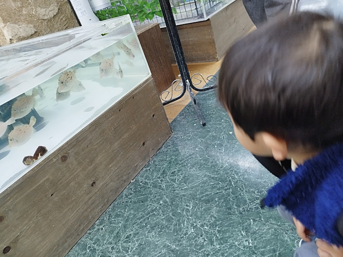 フクロウとしばらく見つめ合っていると、夢中になっていた私の横で、息子が「さかな〜!」と声を上げながら駆け出していきました。