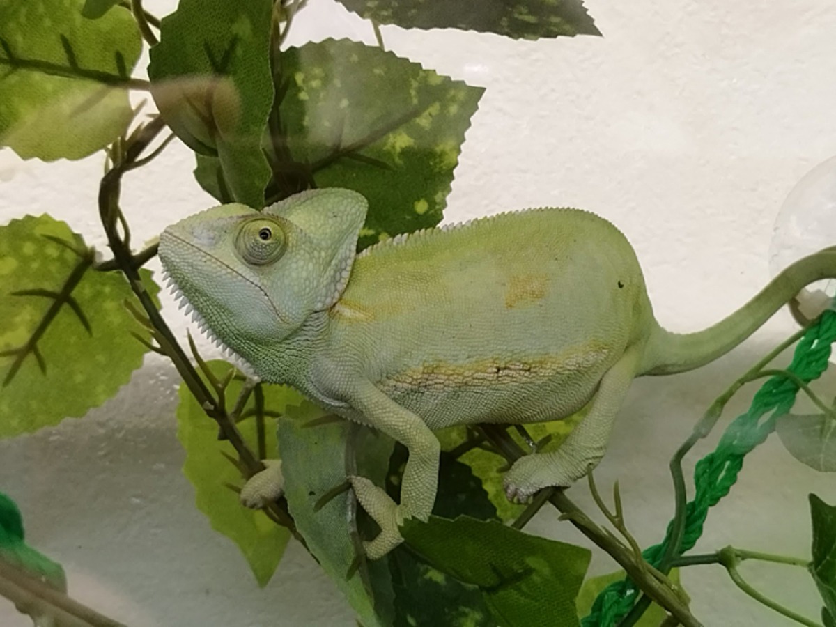 葉っぱに紛れたカメレオンを発見!