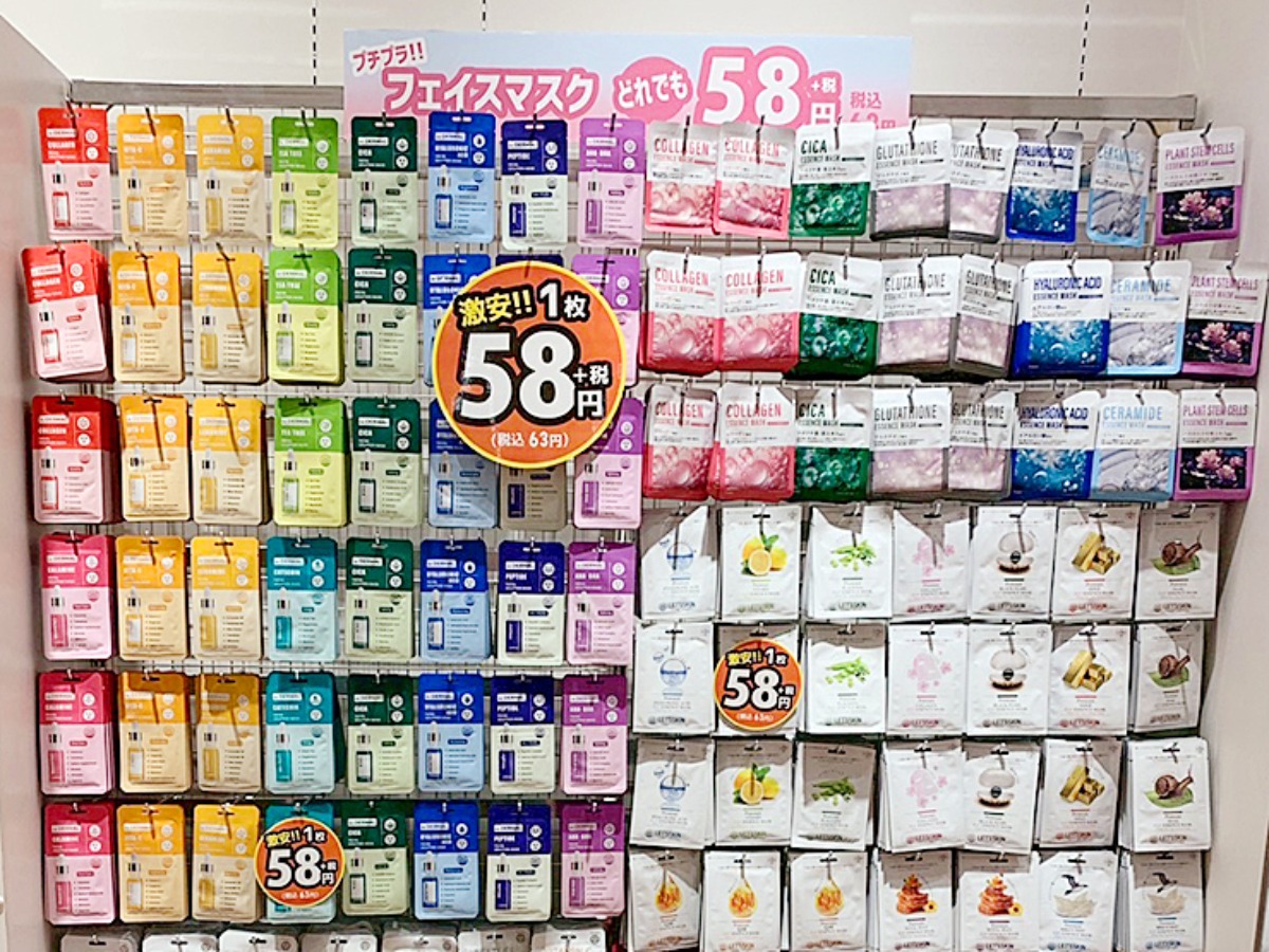30枚入りで550円という驚きの価格の大容量パックをはじめ、1枚から気軽に試せるプチプラ商品、さらにトリデンやナンバーズインといった話題ブランドまで幅広いラインナップ。