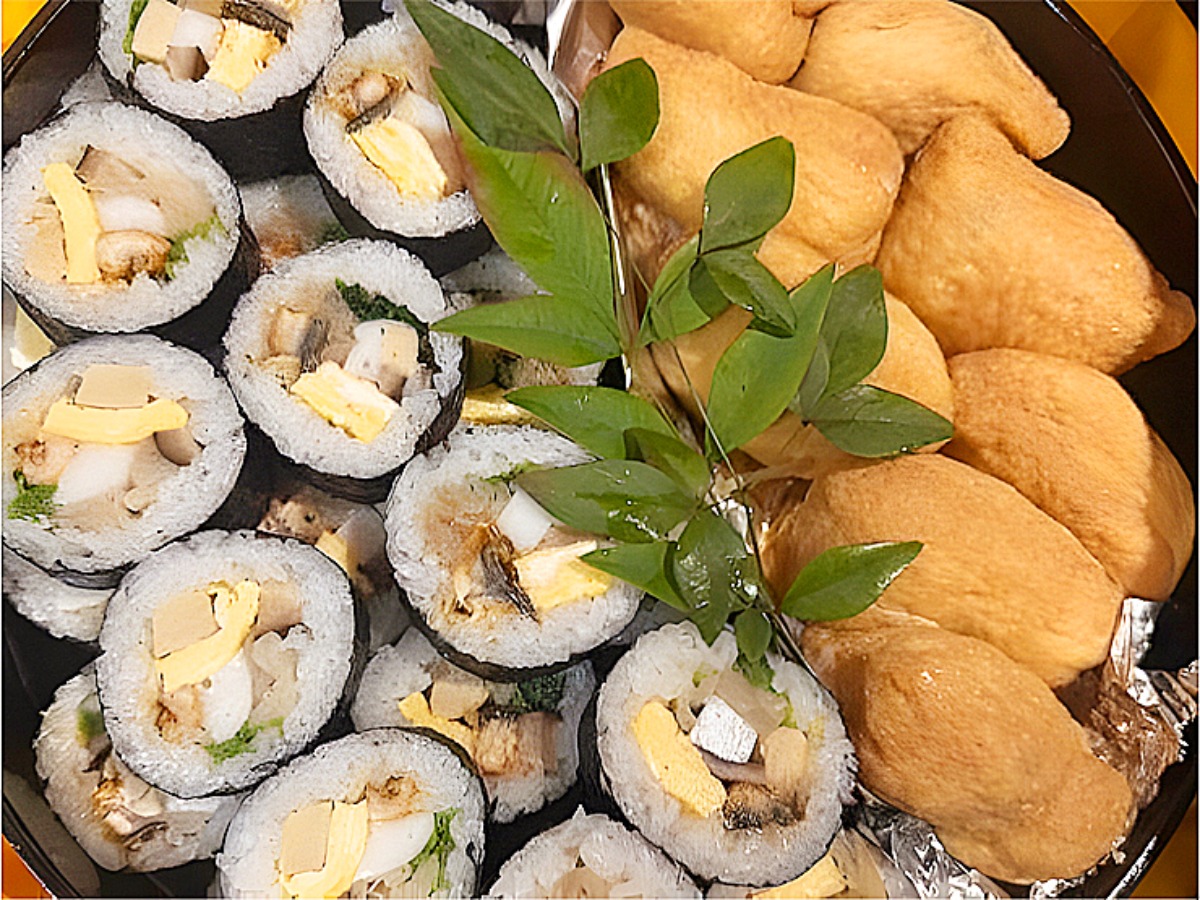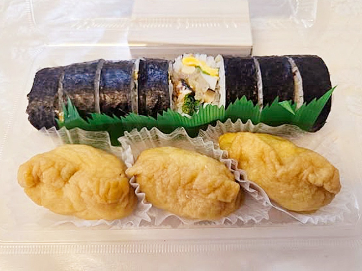 いなり寿司は、存在感のある揚げが特徴で、甘すぎず、素材の味を活かした優しい味わい。巻きずしとの相性も抜群です。