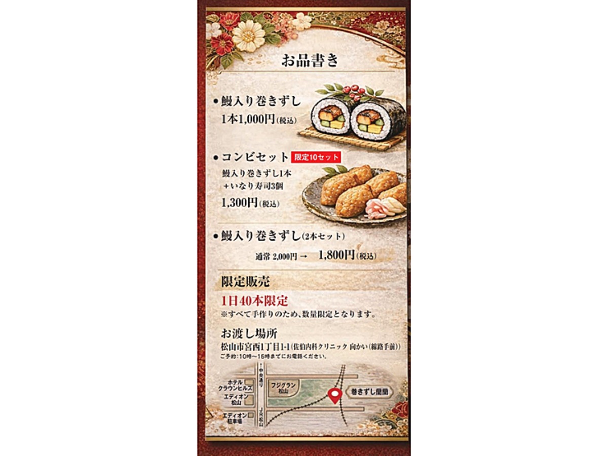【巻きずし蘭蘭/新店】平均年齢73歳の職人が手作り!香り立つ鰻が主役の巻きずし専門店【2026/2/11 愛媛/松山市/飲食店】