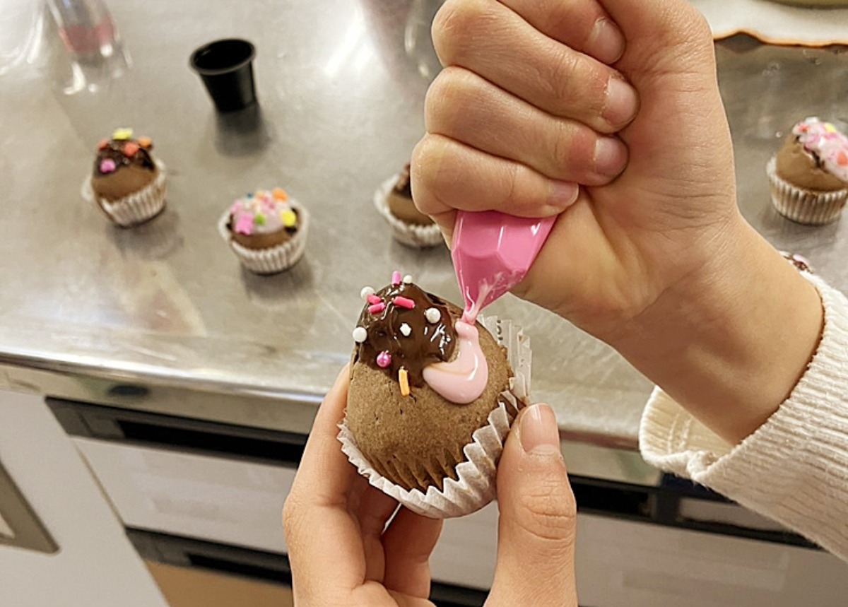 工程自体は決して難しくありませんが、マフィンカップへの生地の入れ方ひとつにも個性が表れます。デコレーションの際のチョコのかけ方や、さまざまな飾り付けアイテムも印象的でした。