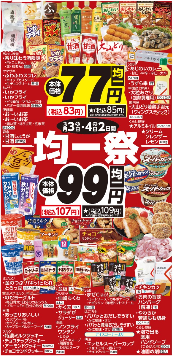 3/3(火)・3/4(水)均一祭