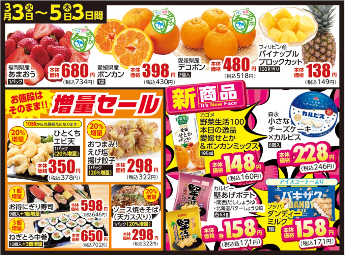 3/3(火)~3/5(木)3日間お買い得情報