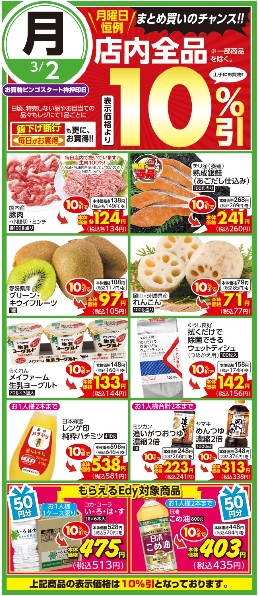 3/2(月)のお買い得情報