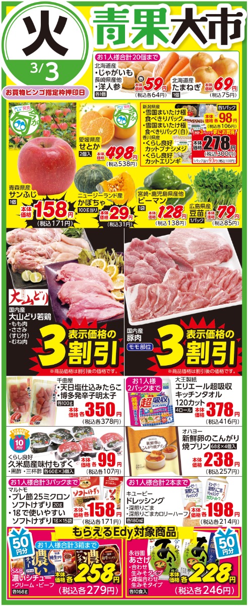 3/3(火)のお買い得情報