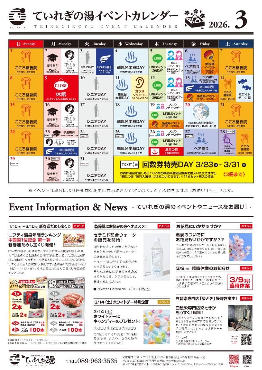 【ていれぎの湯】2026年3月イベントカレンダー