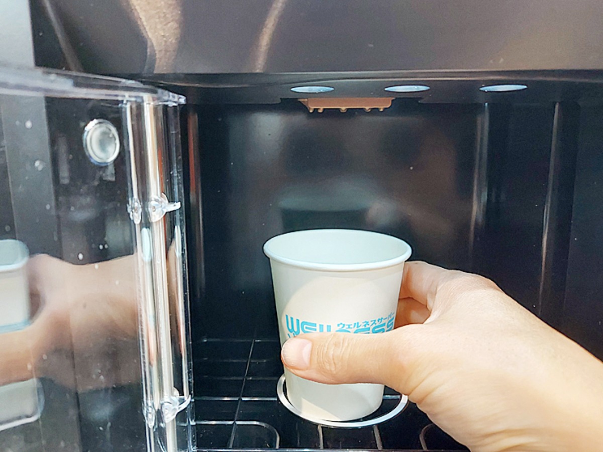 さらに!水とお湯も用意されていて、紙コップも備え付けられているため、これまでマイボトルやマイドリンクを持参していた方も手ぶらで利用できます。