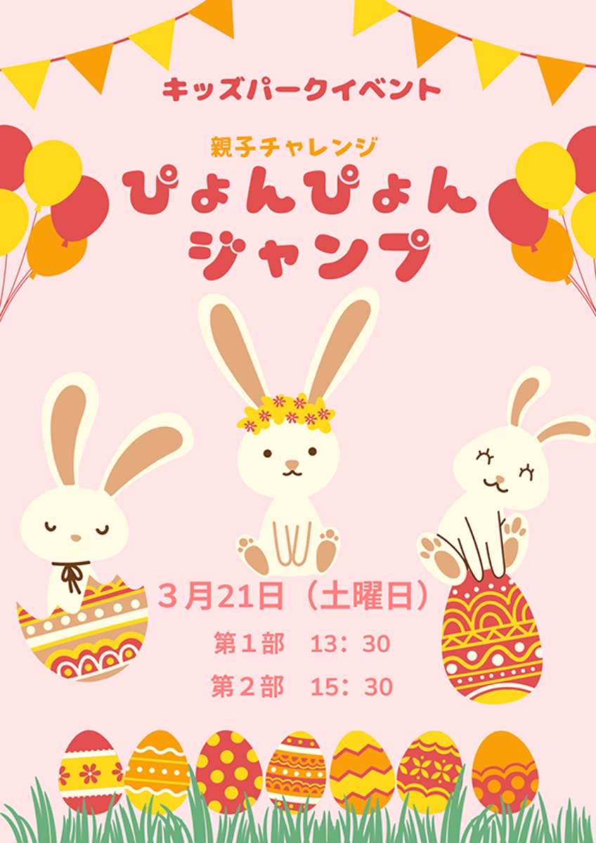 このイベントは親子で一緒に体を動かしながら楽しめる参加型イベントで、イースターをテーマにした春らしい雰囲気が魅力♪