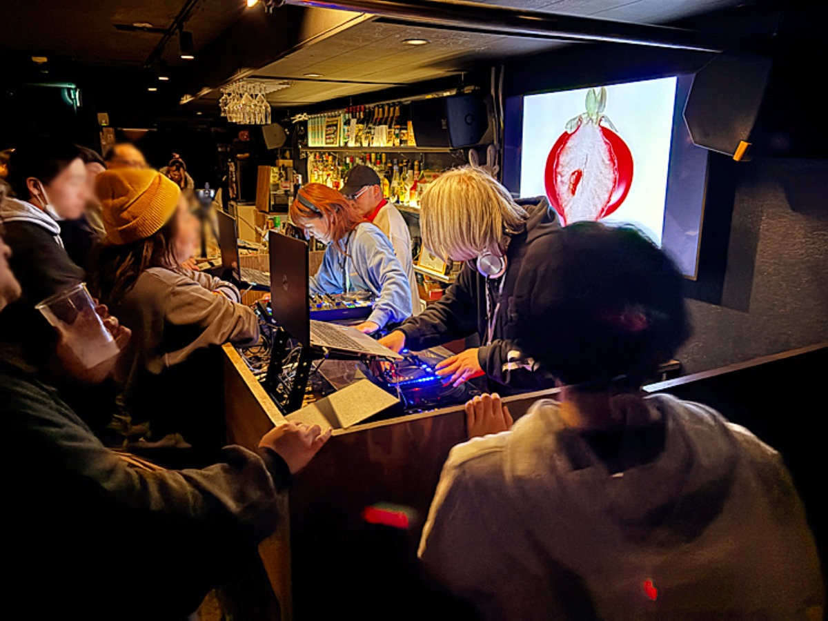 そこにはお酒やジュース、お茶を酌み交わし談笑する人、DJに向かって声援を送ったり踊ったりする人、スマホで曲名調べたりSNS見たりしている人、壁に持たれてうっとり音楽に没頭する人。