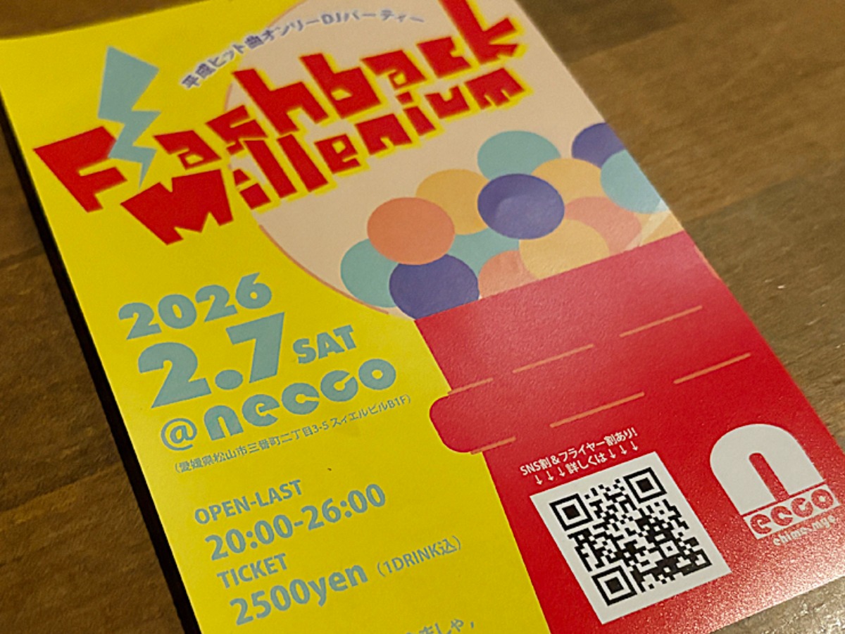 次回平成ヒット曲オンリーPARTY「Flashback Millennium(フラッシュバックミレニアム)」は2026年5月3日(日・祝)に開催だそうです!