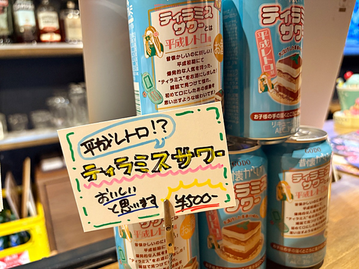 さらにドリンクを注文しようとすると、この日だけの限定メニュー「ティラミスサワー」が積んであります。