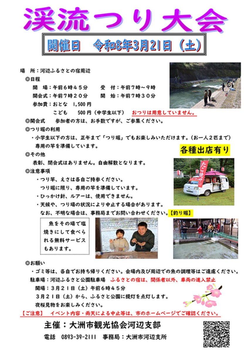 愛媛県大洲市の恒例人気イベント「渓流つり大会」、今年は2026年3月21日(土)に河辺ふるさとの宿周辺で開催されます。