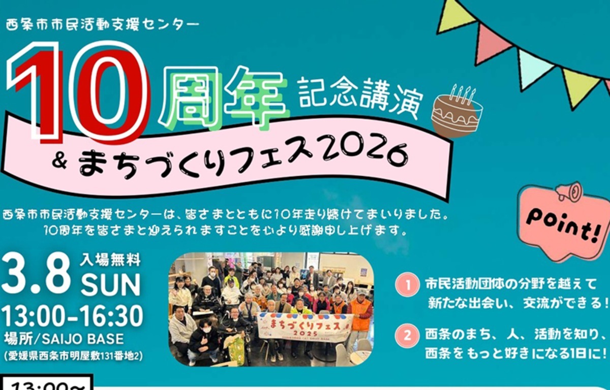 【3/8(日)】西条市市民活動支援センター10周年記念講演&まちづくりフェス2026(愛媛/松野町・西条市)