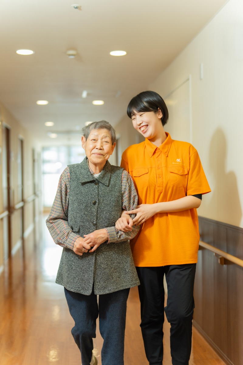 職員と入居者が家族のように過ごす温かな介護施設。食事補助や柔軟な働き方など、手厚い福利厚生でスタッフの生活も支える