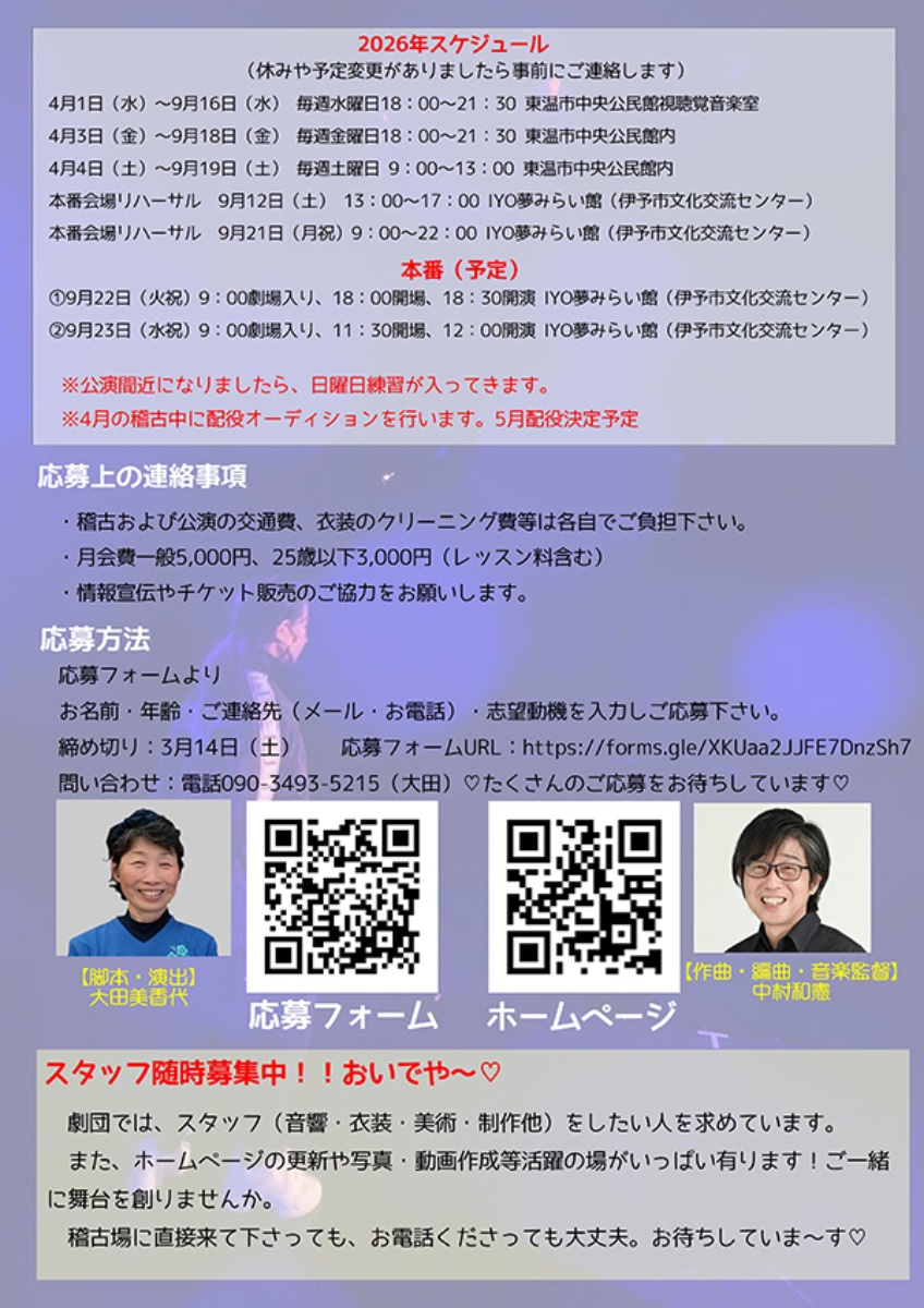 2026年9月22日(火・祝)・23日(水・祝)にはIYO夢みらい館で本番公演を予定!