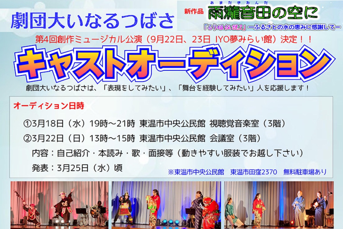 東温市発の劇団「大いなるつばさ」が、2026年9月公演予定の創作ミュージカルに向けてキャストオーディションを実施!