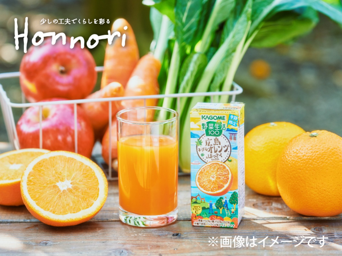 季節ごとの味わいが登場する『野菜生活100』。果物と野菜のおいしさをギュギュッとパッケージした、野菜果実ミックスジュースです。なかでも毎回話題になるのが、季節限定シリーズ。今回は、瀬戸内の柑橘である「広島ネーブルオレンジ&はっさくミックス」が新登場します。期間限定のおいしさで、 1日分(*)のビタミンCを摂ることができ、朝食のおともや1日のリフレッシュタイムにおすすめです。
