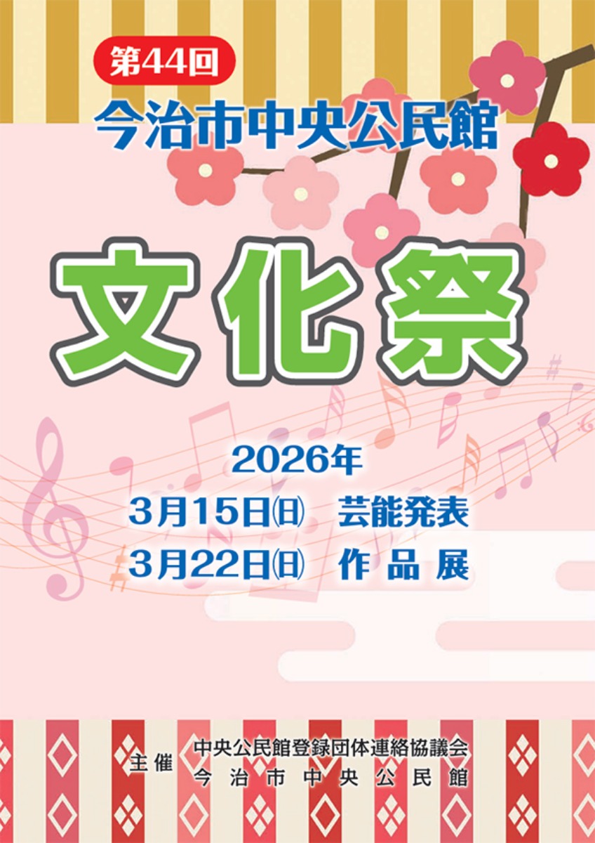 今治市の春を鮮やかに彩る「中央公民館文化祭」が2026年も開催されます。