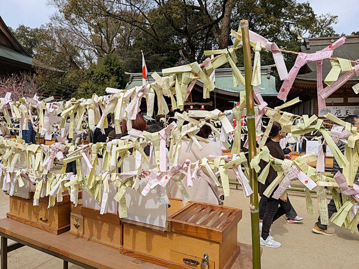 おみくじは、神様とご縁を結ぶという意味で、結んで帰る習わしがあるそうです。