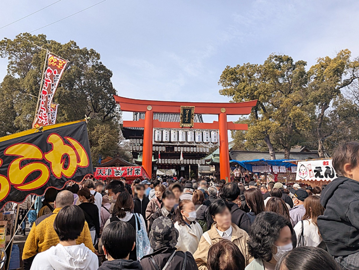 鳥居の外まで続く行列。行列の長さにびっくり!