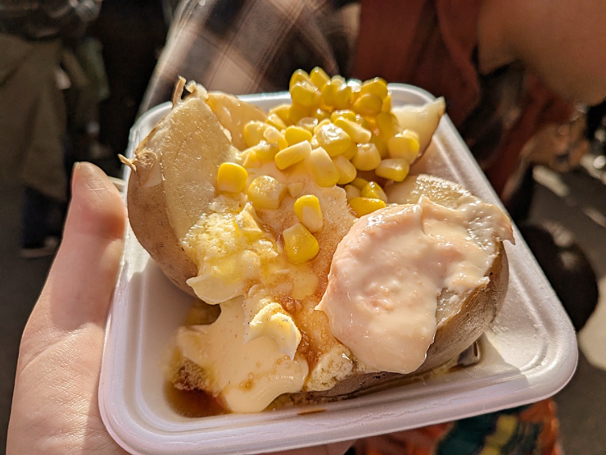個人的にイチオシのじゃがバター!!トッピングは自由なのが嬉しすぎる。