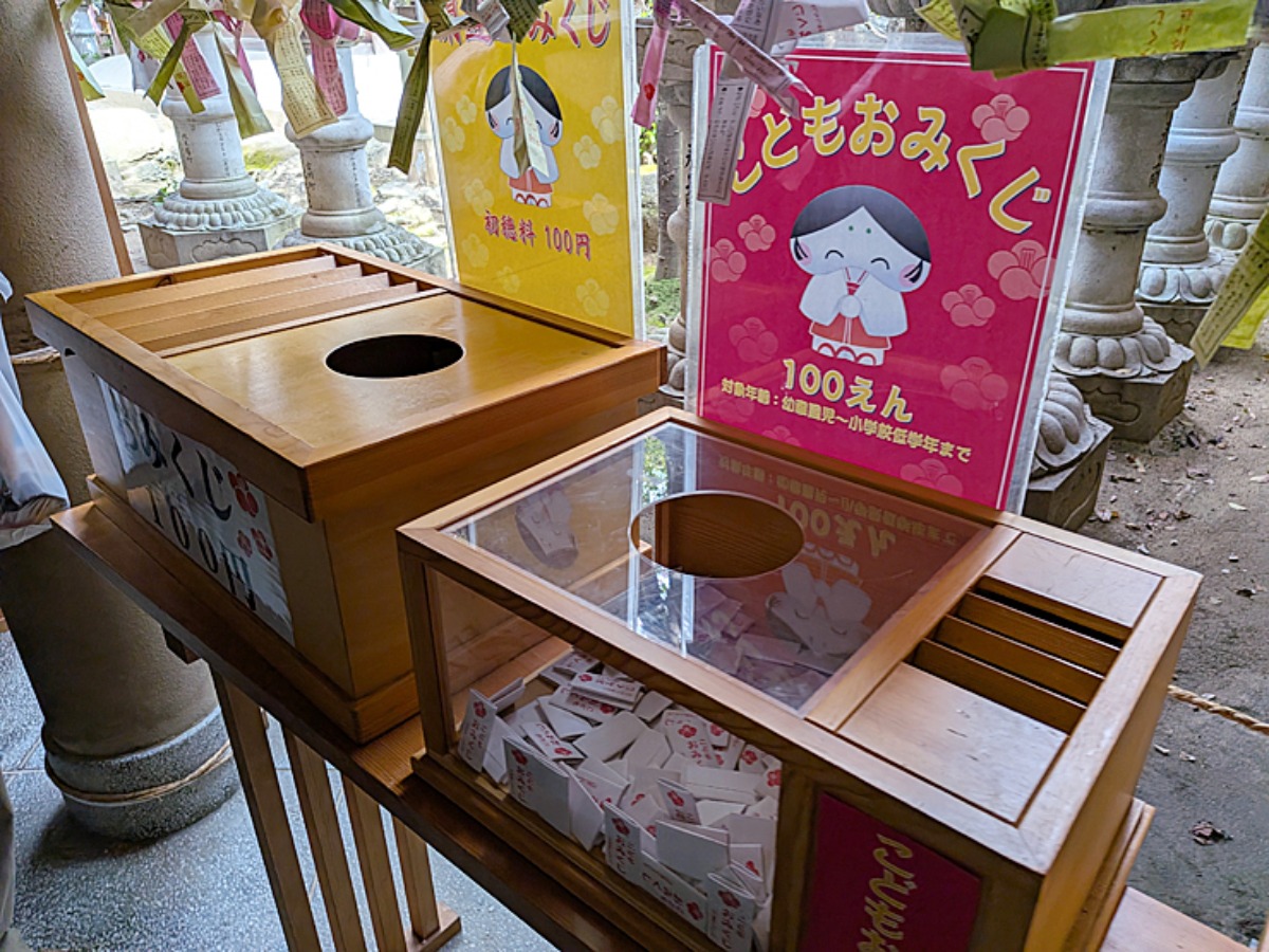 混雑しないように、いたるところにおみくじが置いてあります。