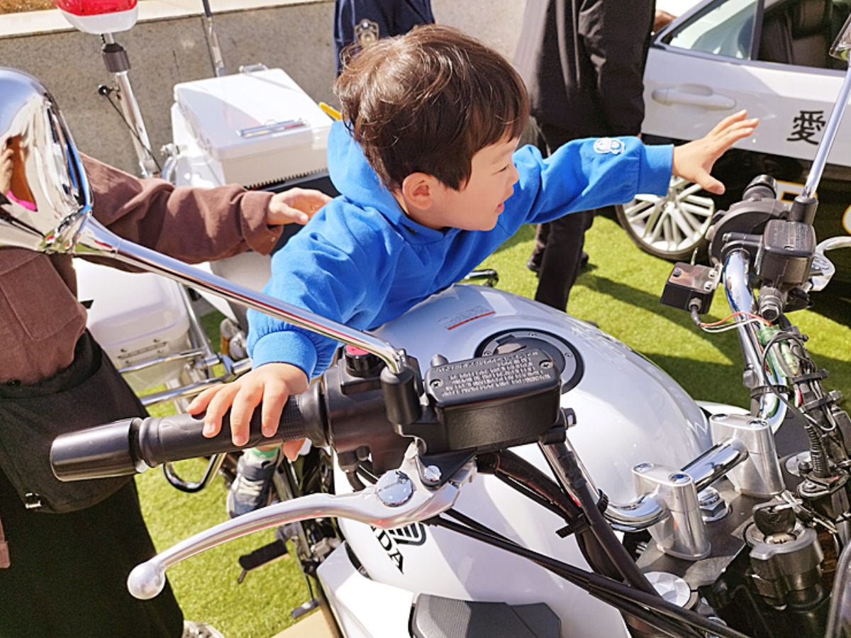 会場外では白バイの試乗体験ができるコーナーがあり、息子氏も白バイ隊員体験ができてかなりご満悦の様子。