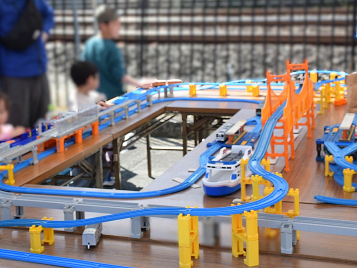 また鉄道好きにはたまらない「ビッグトイレール」コーナーでは、本物の線路横でプラレール遊びが楽しめます。