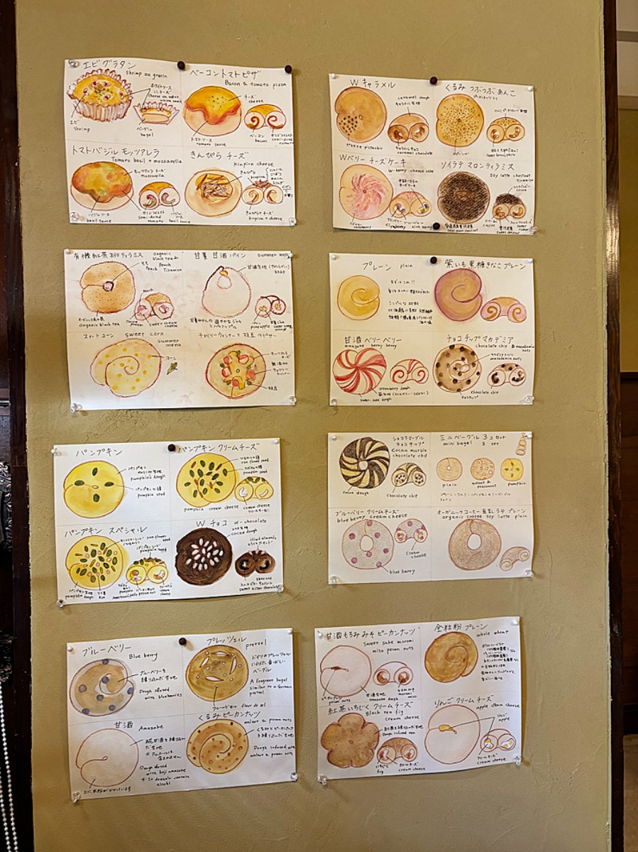 壁に各ベーグルのフィリングの説明が書いてあり、見えない美味しさを知ることができます。