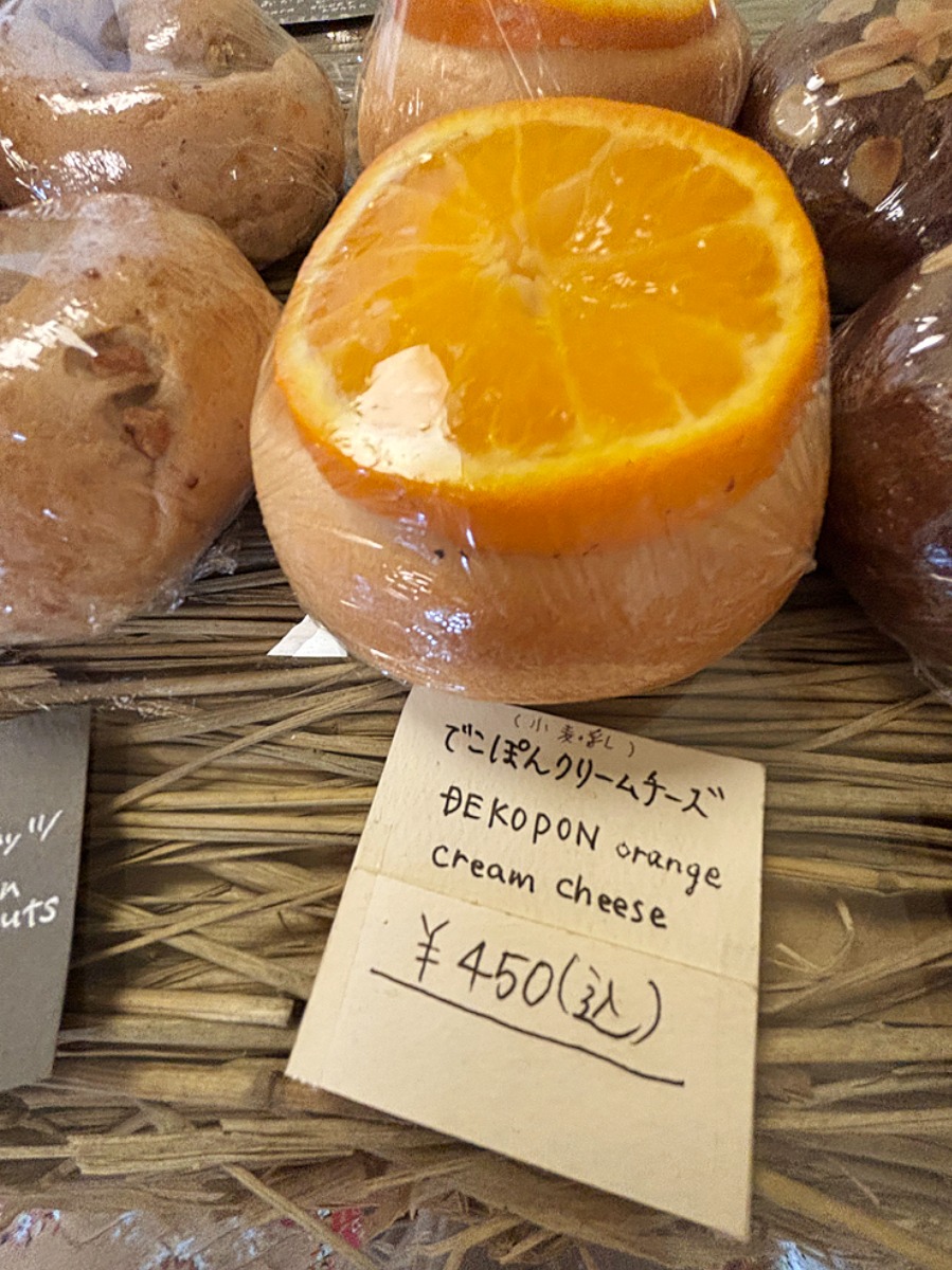 デコポンクリームチーズ1個450円です。輪切りのでこぽんが乗っており、珍しいベーグルで気になりました!観光客らしきお客様も「わー珍しい!さすが愛媛」と喜んでおり、私まで嬉しくなりました♪