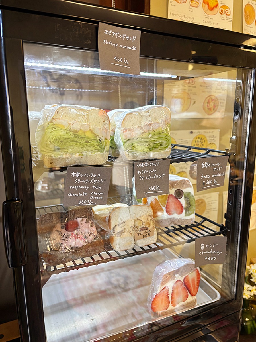 こちらは、入口付近にあるベーグルサンドです。今の季節らしいフルーツサンドが残り1個でした。どれもしっかりとボリュームがあり、美味しそうですよね♪